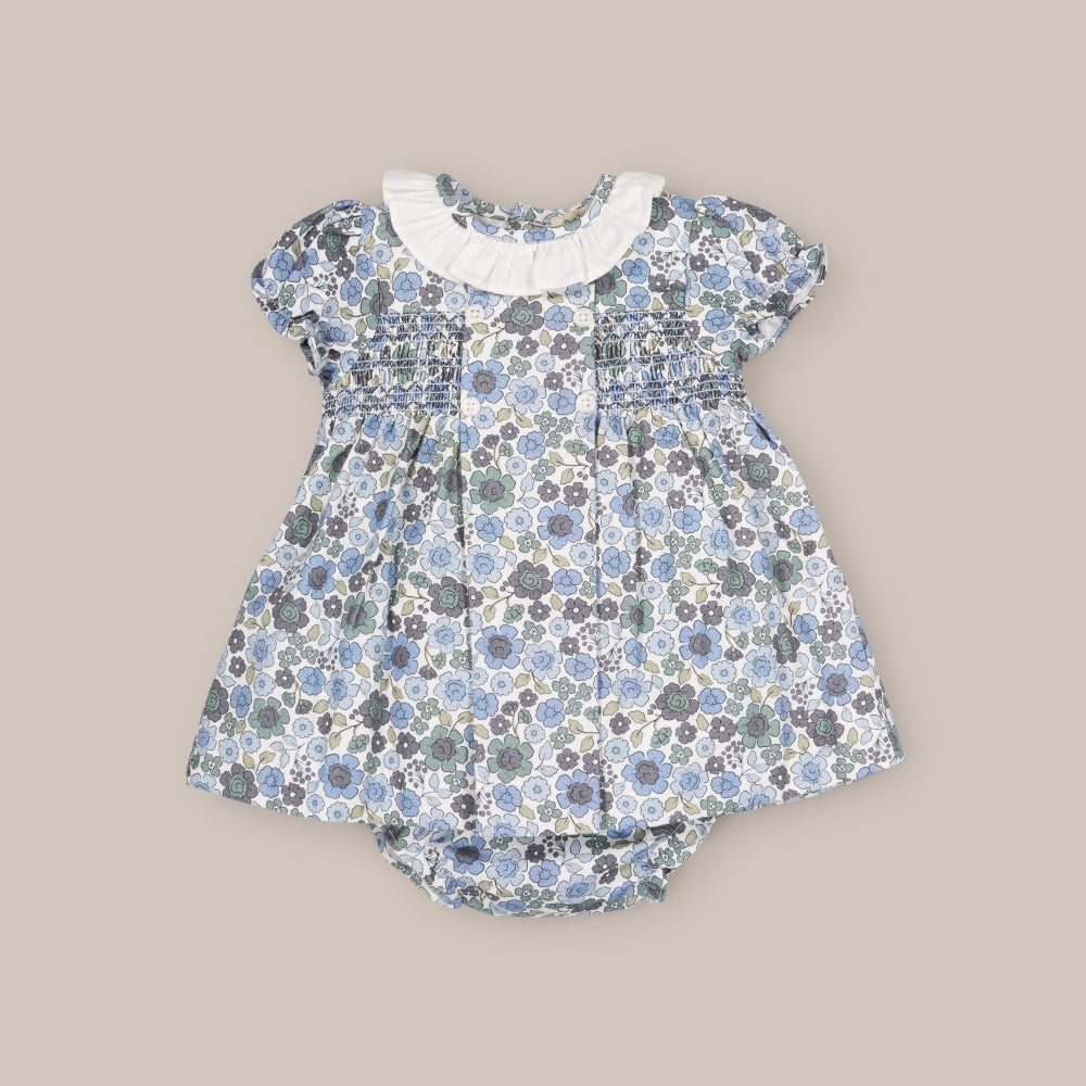 Encantador jesusín confeccionado en 100% algodón con estampado floral, perfecto para aportar frescura y comodidad a los primeros meses. Presenta un delicado detalle de smock en el pecho, acompañado de un cuello volante que realza su aire clásico y tierno.